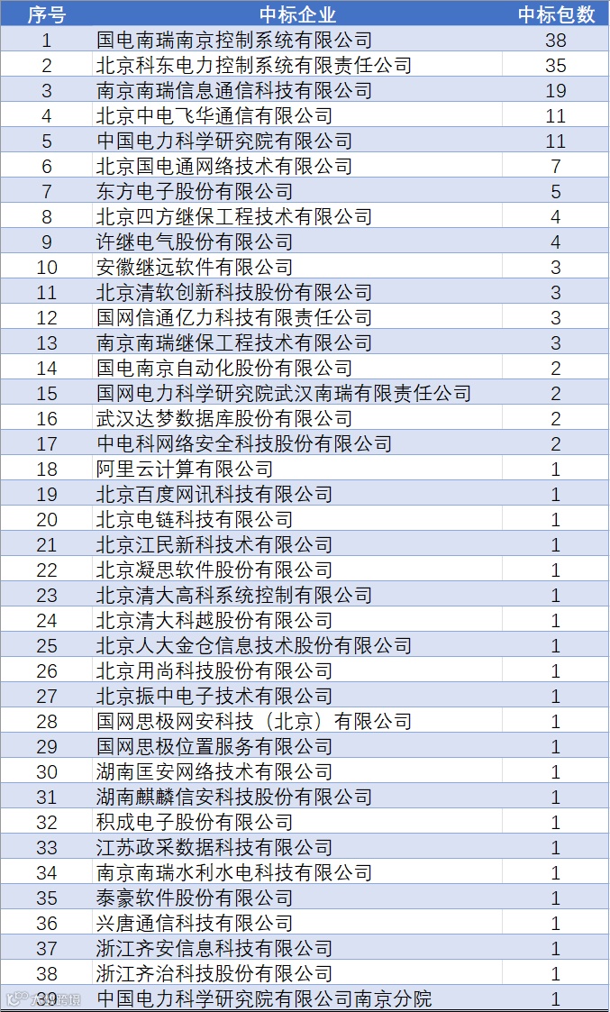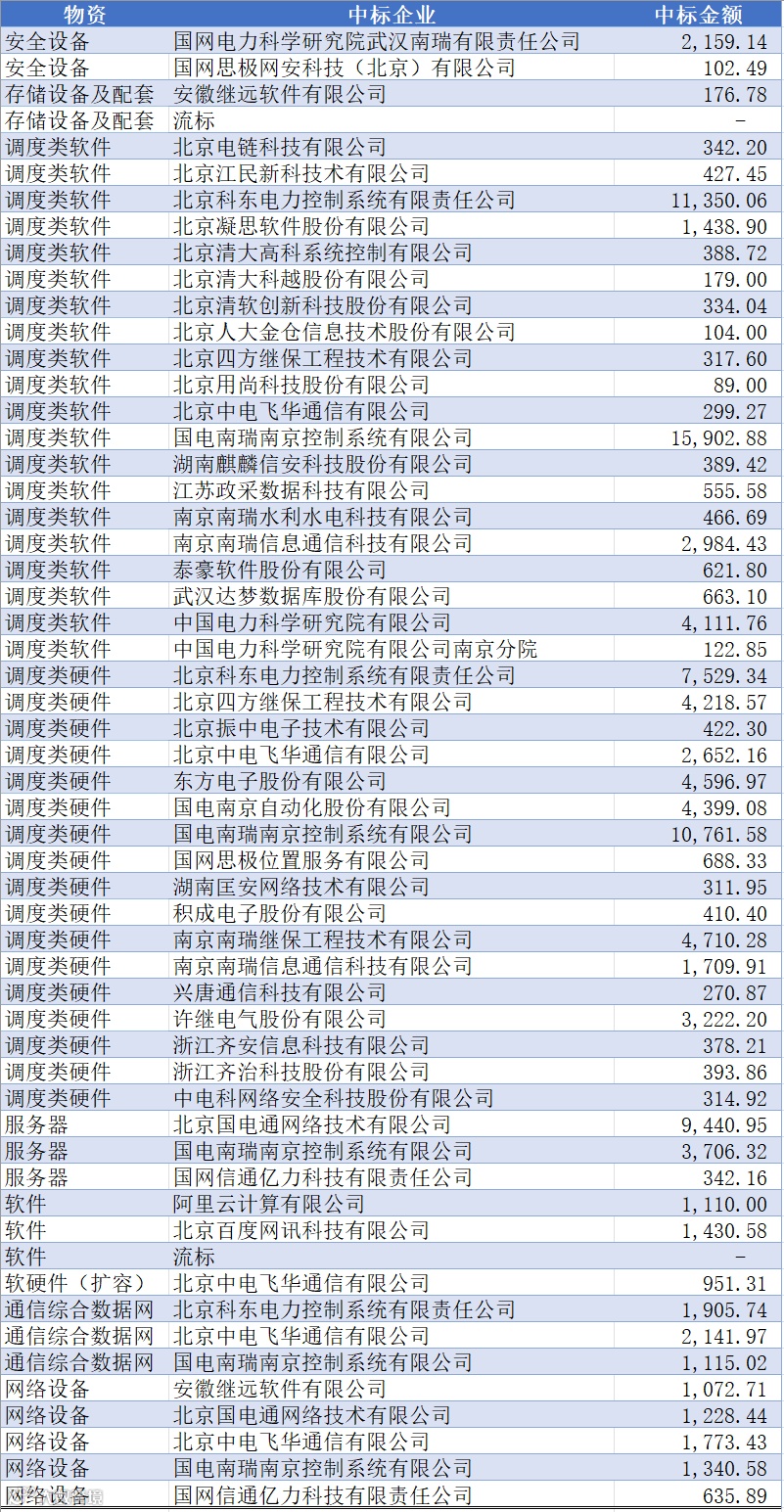 国电南瑞南京控制系统有限公司、北京中电飞华通信有限公司这2家企业都中标了5类物资。