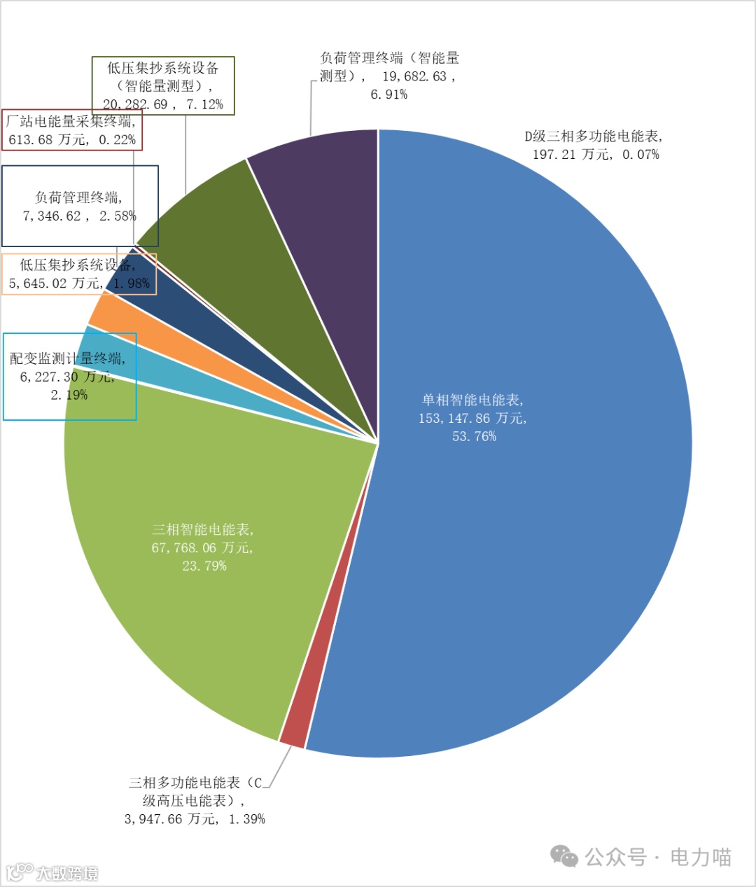 从智能电表和计量自动化终端各物资品类的投资金额占比来看: