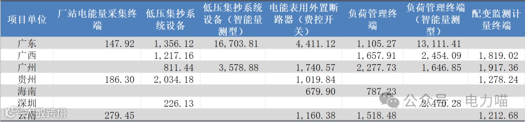 低压集抄系统设备(智能量测型)在深圳和贵州没有安排需求;