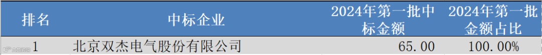 共有5家企业中标,中标金额前三位分别为:双杰电气、北京科锐、四方继保。