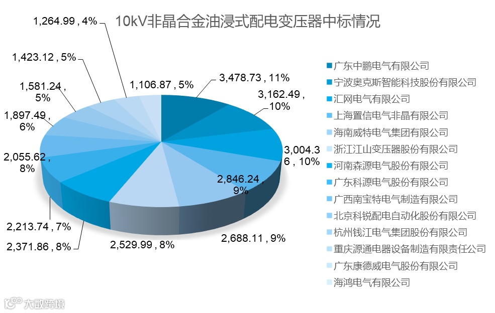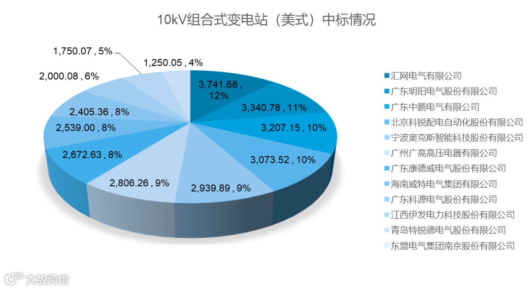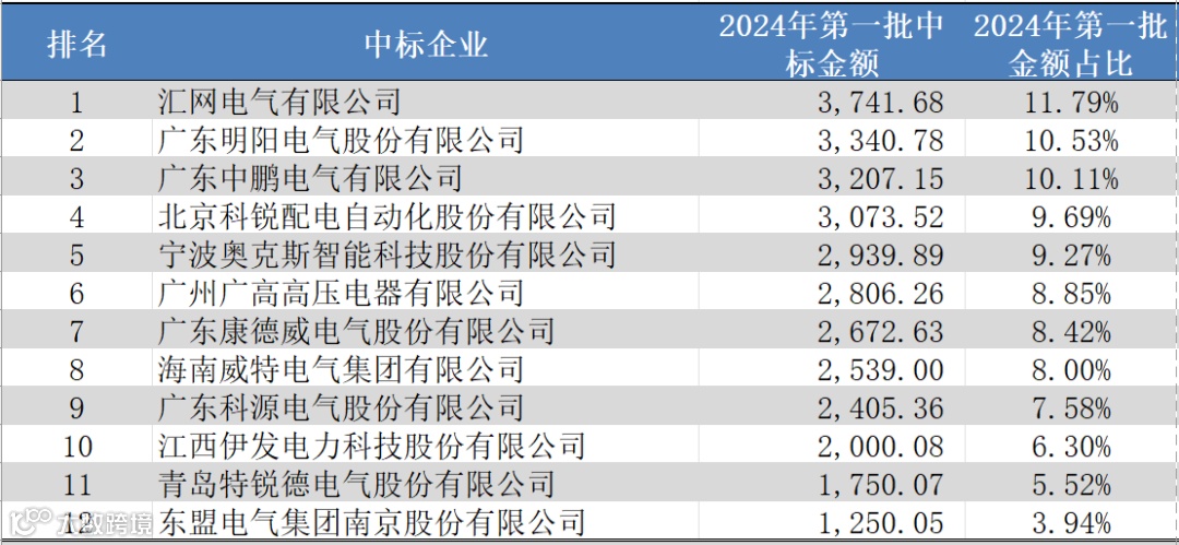 共有12家企业中标,中标金额前三位分别为:汇网电气、明阳电气、中鹏电气。