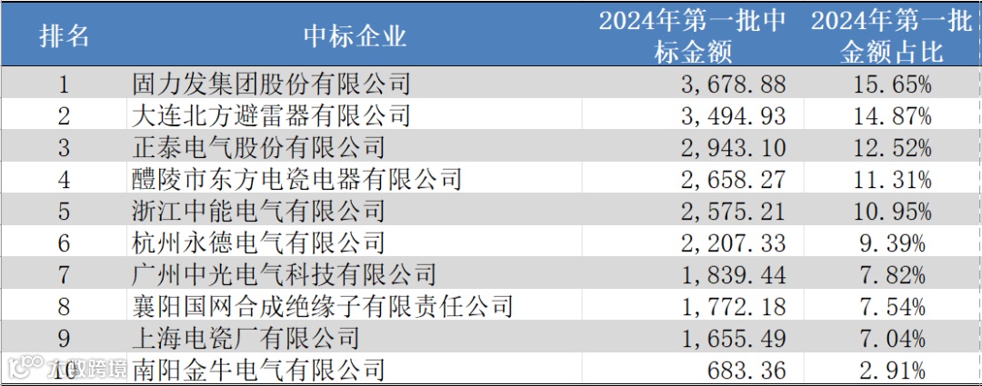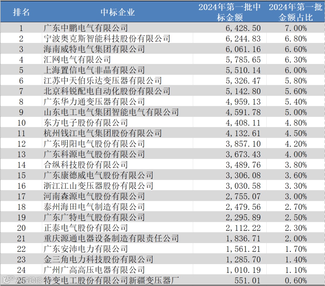 共有25家企业中标,中标金额前三位分别为:中鹏电气、奥克斯智能、威特电气。