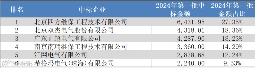 共有6家企业中标,中标金额前三位分别为:四方继保、南瑞继保工程、正超电气。