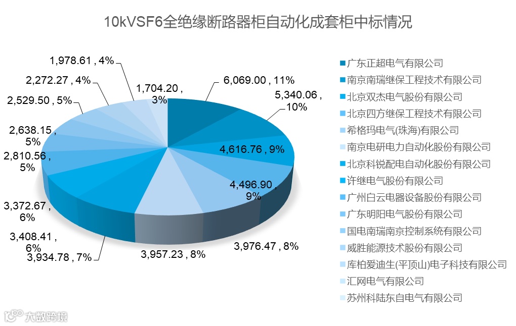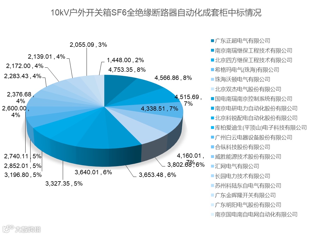 共有10家企业中标,中标金额前三位分别为:固力发、大连北方、正泰电气。