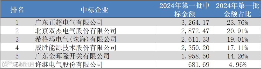 共有6家企业中标,中标金额前三位分别为:正超电气、双杰电气、希格玛电气。