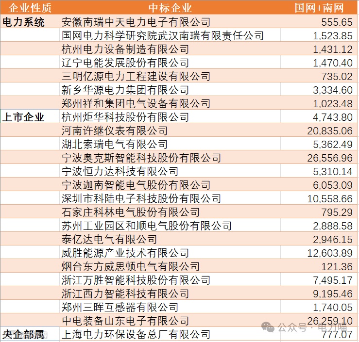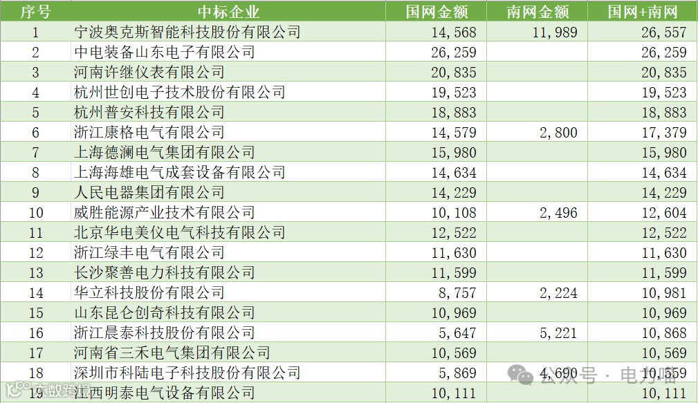 综合国网和南网的中标结果,两网共有260家企业中标,其中19家企业中标金额超过1亿元。
