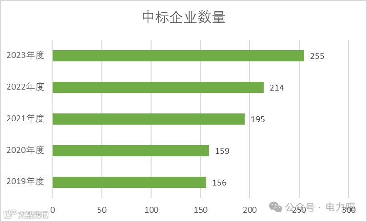 从这三年中标企业数量来看,市场竞争十分激烈,在2023年度,近五年第一次中标的企业数量仍旧在大量增加,共有67家。