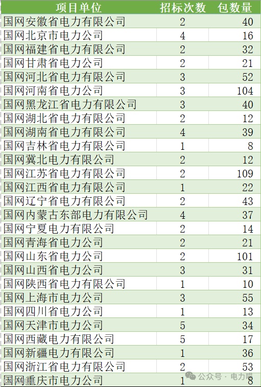 各电力全年共9个有电能计量箱产品的项目,合计35个包完成招标(即不含流标)。