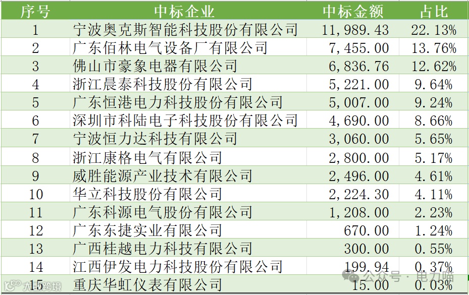 2023年度,南网范围共有15家企业中标电能计量箱产品。
