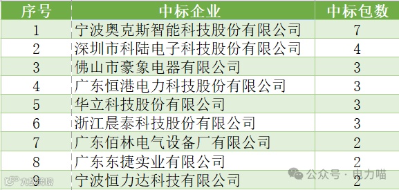 由于南网市场中标份额十分集中,而国网市场中标份额十分分散,因此受南网市场中标量影响,宁波奥克斯智能科技股份有限公司、华立科技股份有限公司、浙江晨泰科技股份有限公司、深圳市科陆电子科技股份有限公司、广东恒港电力科技股份有限公司、宁波恒力达科技有限公司和江西伊发电力科技股份有限公司等南网中标企业在2023年度的综合中标金额名次大幅提高。