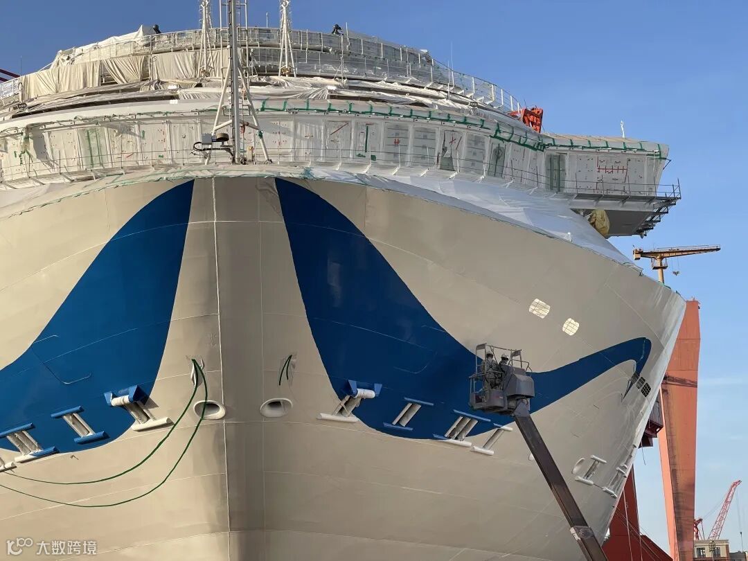 在项目组的统筹领导、涂装部各级人员的共同努力下,经过近一周不分昼夜的探索和研究,外板彩绘工程顺利收官,完美展现了国产首艘大型邮轮的美与力量!
