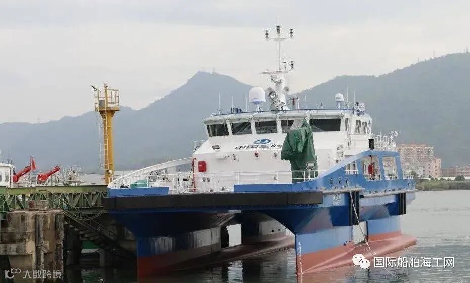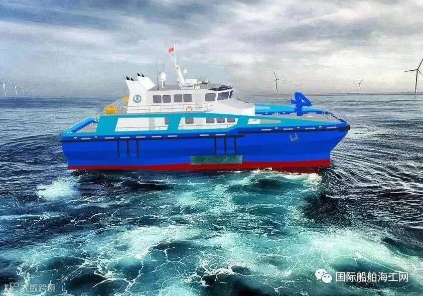 2022年12月中船七〇二所为三峡新能源海上风电运维江苏有限公司研发设计的国内首艘双模式高速风电运维船顺利接水。