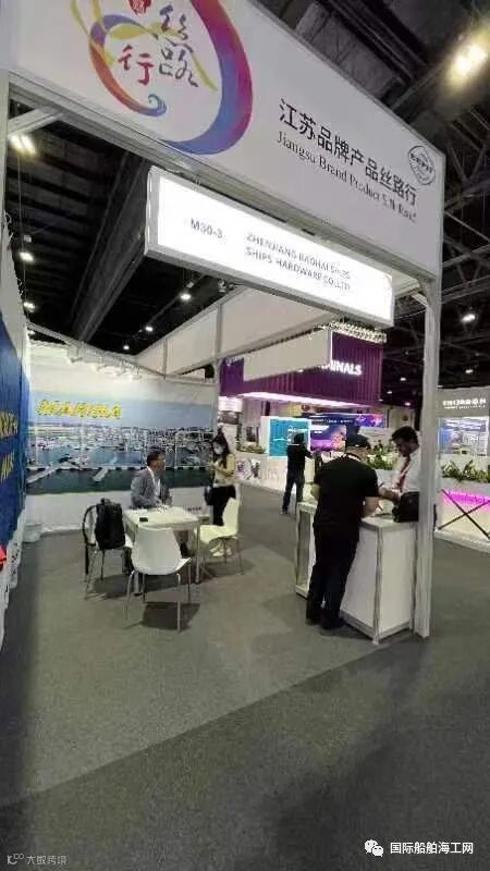 江苏省一直积极响应国家政策,积极推进深化“一带一路”合作,中国与“一带一路”国家守望相助、共克时艰,推动共建“一带一路”取得了新进展、新成效。此次由江苏省牵头,镇江贸促会具体承办,促成镇江地区海事船舶企业以江苏一带一路展团形式精彩亮相中东海事物流展。经过几个月的精心准备,镇江宝海船舶五金有限公司,江苏华拓安全产品有限公司(江苏华燕船舶装备有限公司),江苏深渡消防装备科技有限公司,镇江芯时代新能源有限公司,镇江昊博进出口有限公司等企业顺利参与展团展出,涵盖了锚链,救生,安全,消防,新能源,救生艇,巡逻艇等众多产品。江苏一带一路展团,位在展馆中心位置,展台形象整齐大气,展品丰富多样,受到了主办方及观众的一致好评。参展企业也对此次参展效果充满信心。