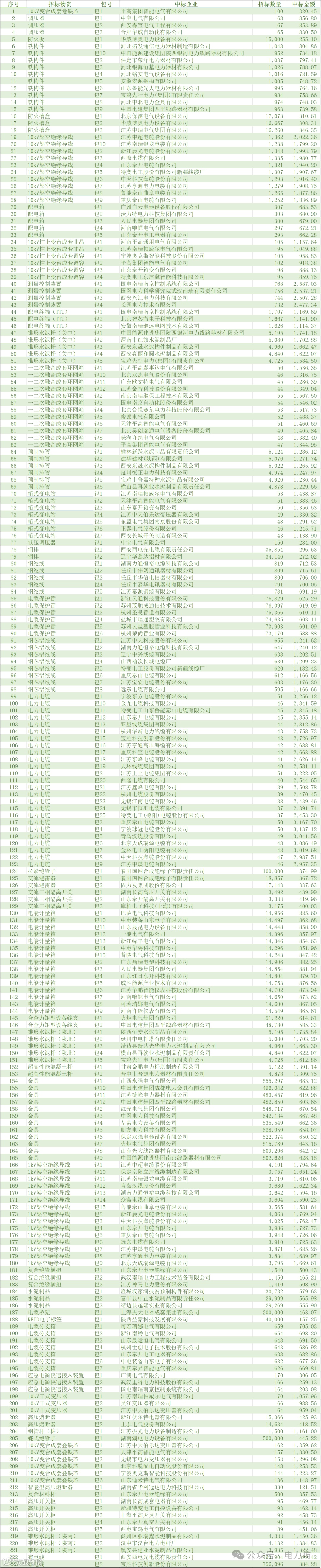 1 2024年第一次配网物资协议库存中标结果