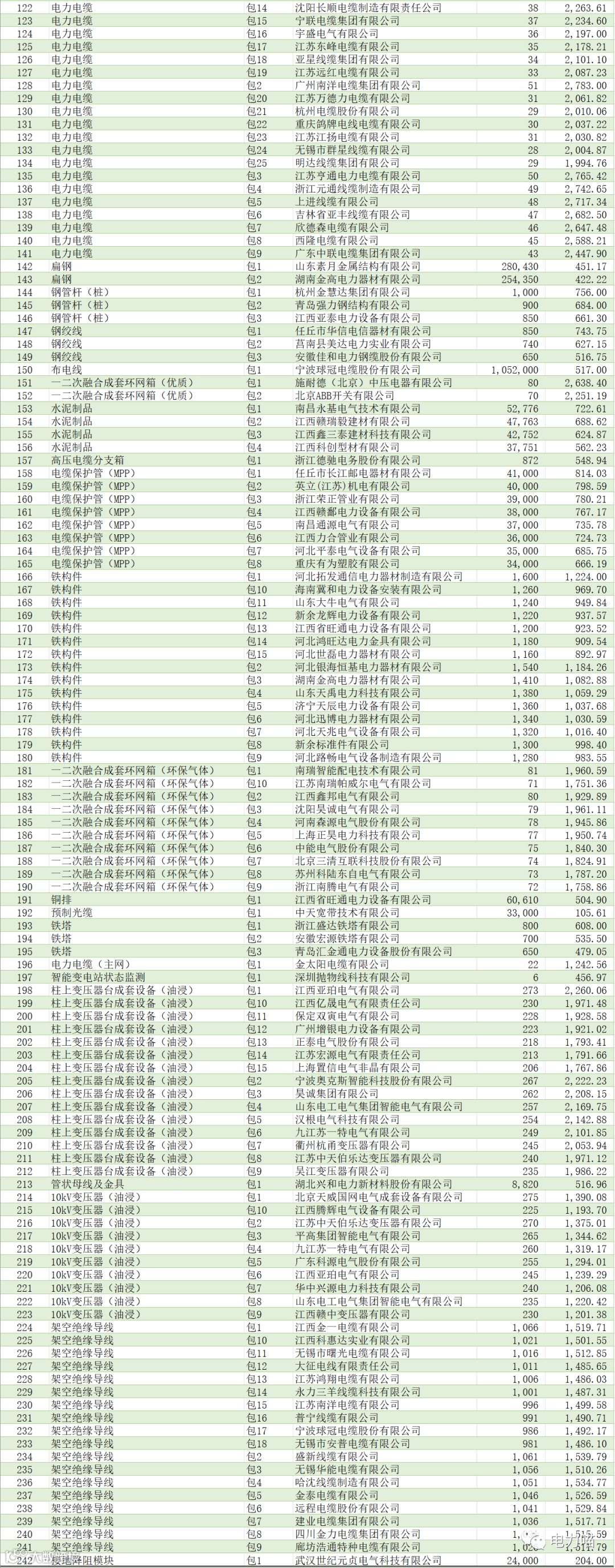 本次项目共有242个标包,以下是各物资标包中标明细。