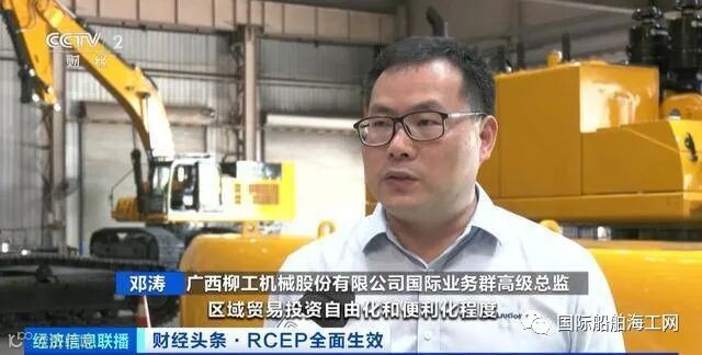 广西柳工机械股份有限公司国际业务群高级总监 邓涛:RCEP的生效实施提高了区域贸易投资自由化和便利化程度,给柳工走出去创造了更多机遇。今年1月到4月,柳工在RCEP市场的收入继续大幅同比增长超过60%。