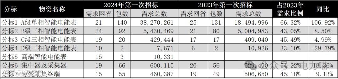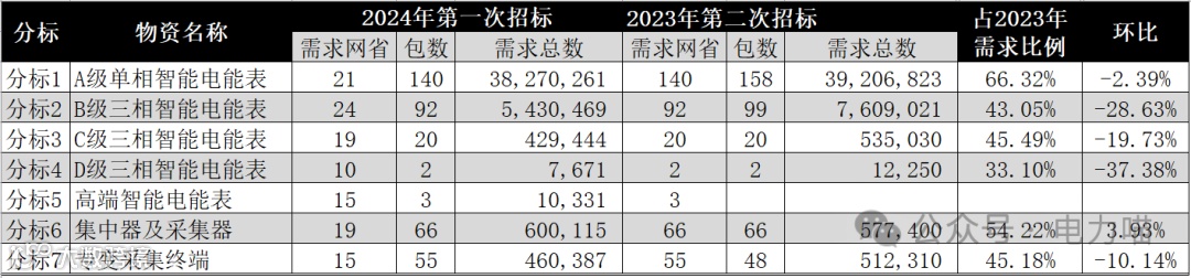 从环比数据来看,除集中器及采集器分标的需求量略有增长,其他分标的物资需求量都有下降。
