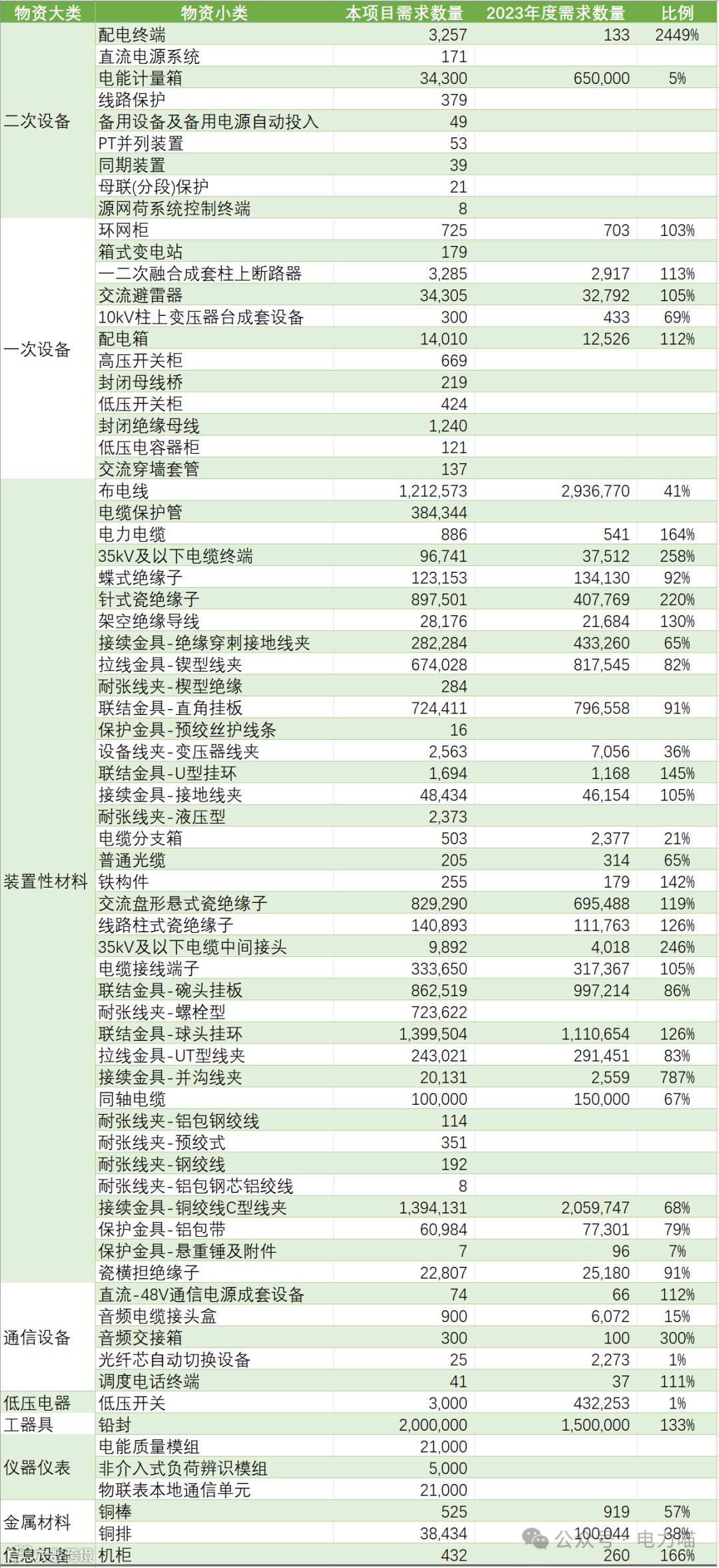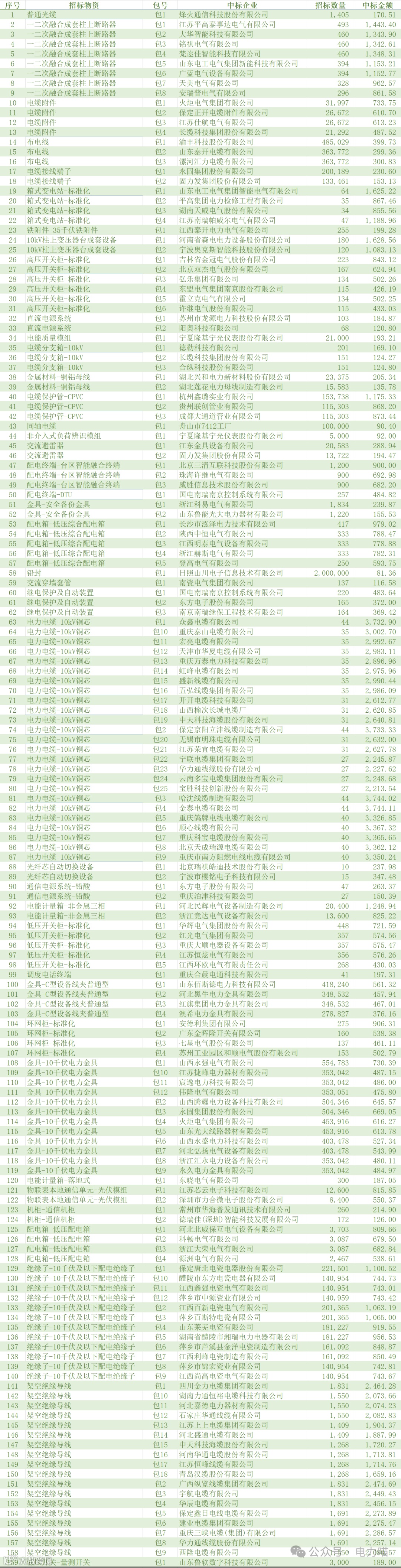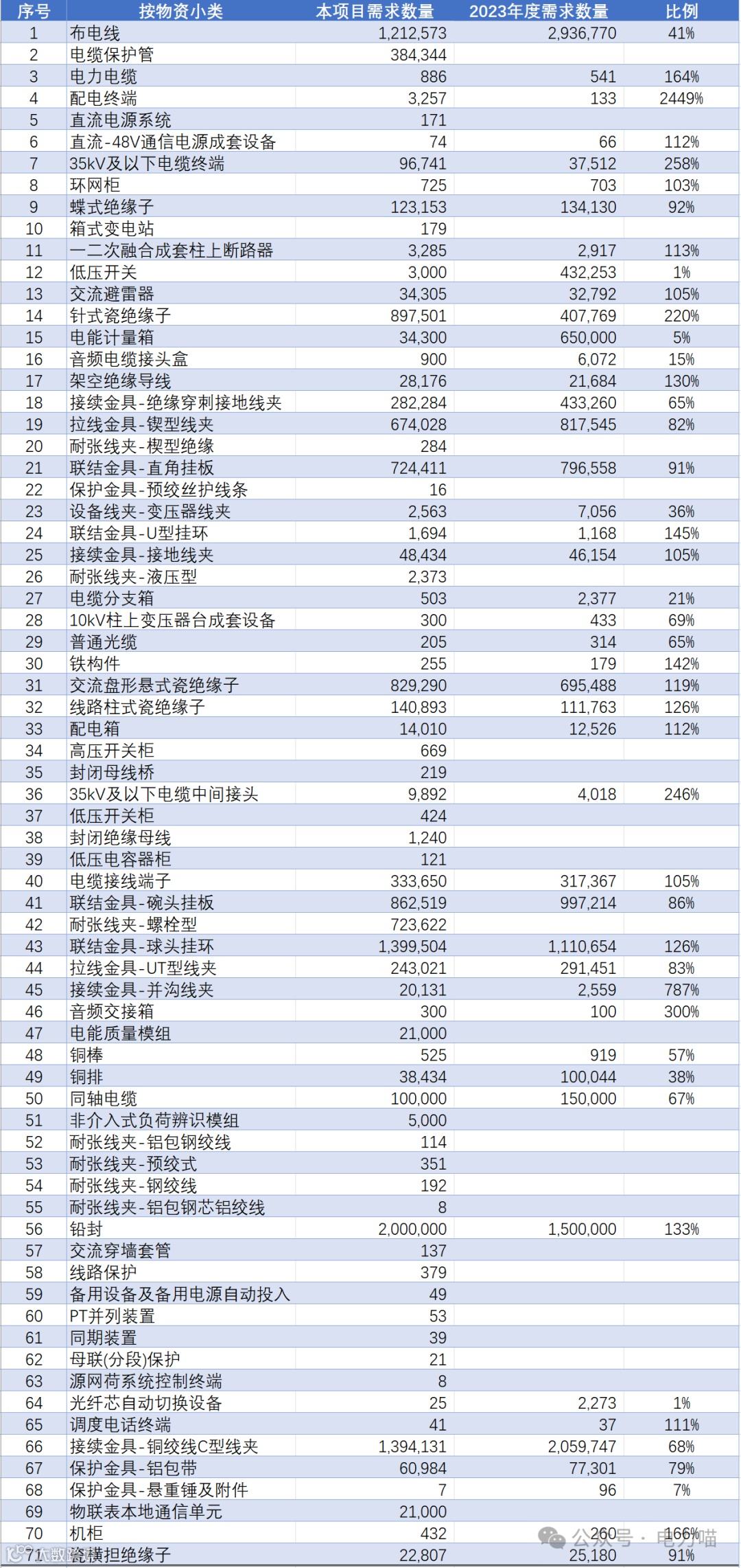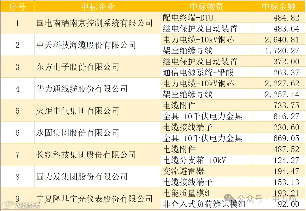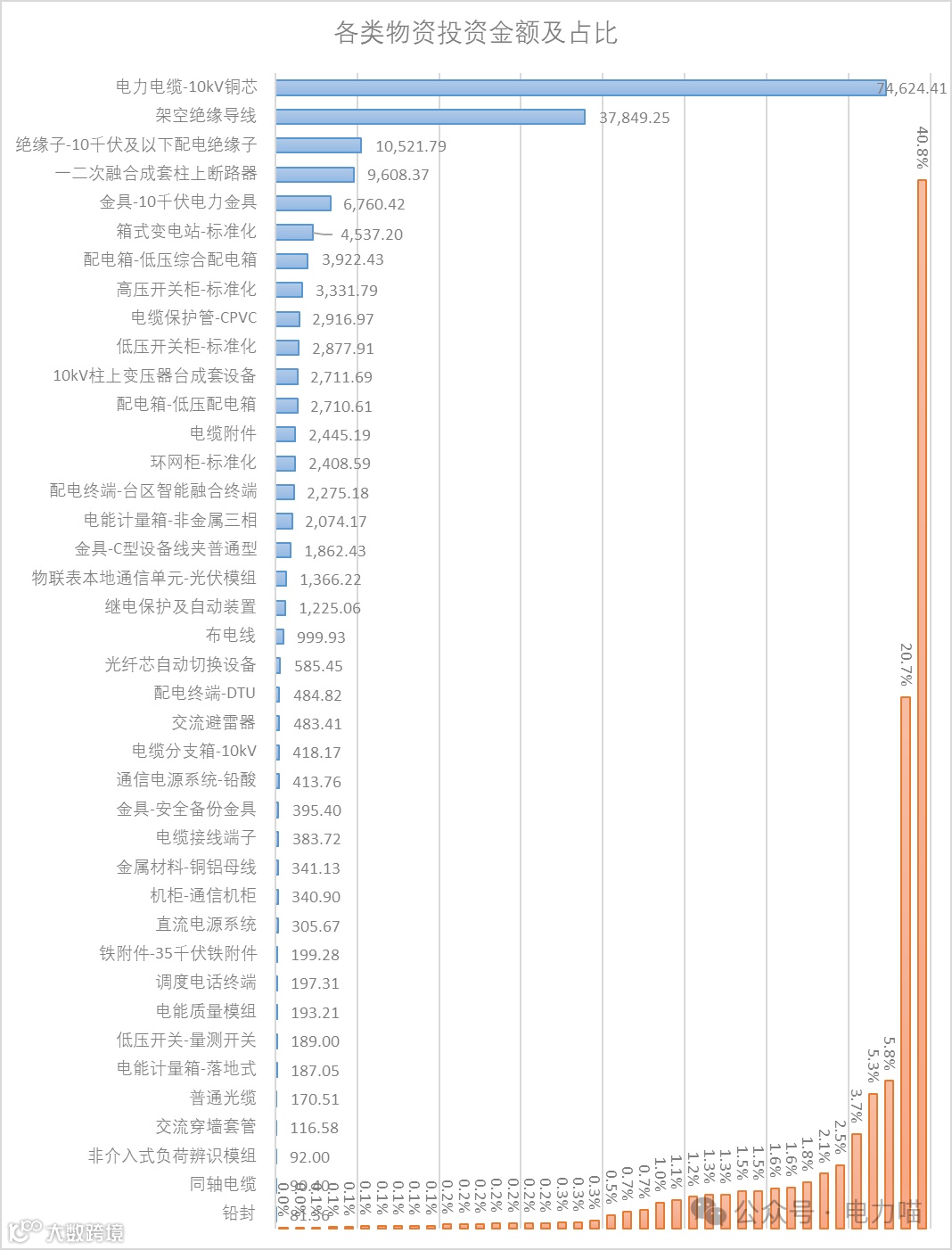 根据最终中标结果,电力电缆-10kV铜芯、架空绝缘导线、绝缘子-10千伏及以下配电绝缘子等3类物资标段在本项目的投资金额超过1亿元,这3类物资投资金额占本次项目投资总金额的67.3%。