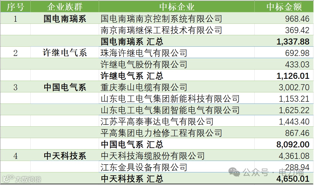 本次项目共有4个企业族群超过2家或以上数量的企业中标,占所有企业数量的7%,集群作战能力突出;中标金额占总规模的8.3%。