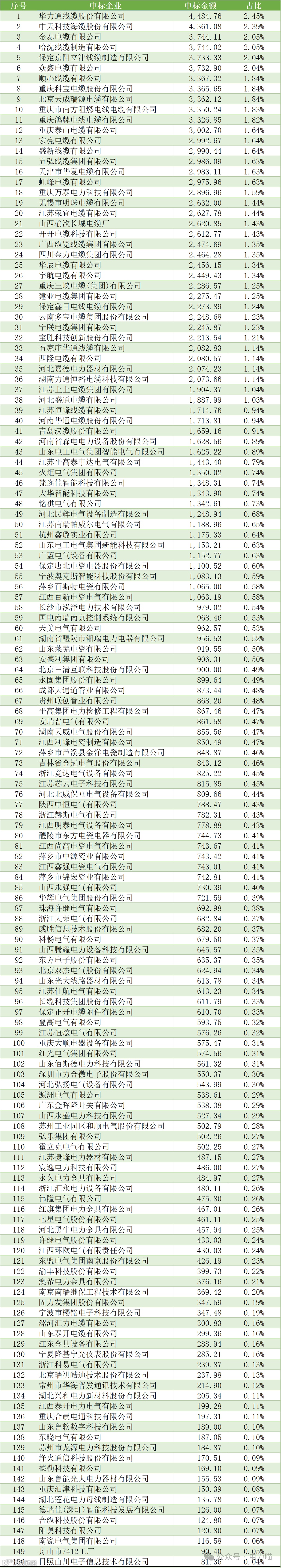 本次项目共有9家企业中标2个以上标段,占所有企业数量的6%,产品储备丰富、市场能力突出;中标金额占总规模的7.6%。