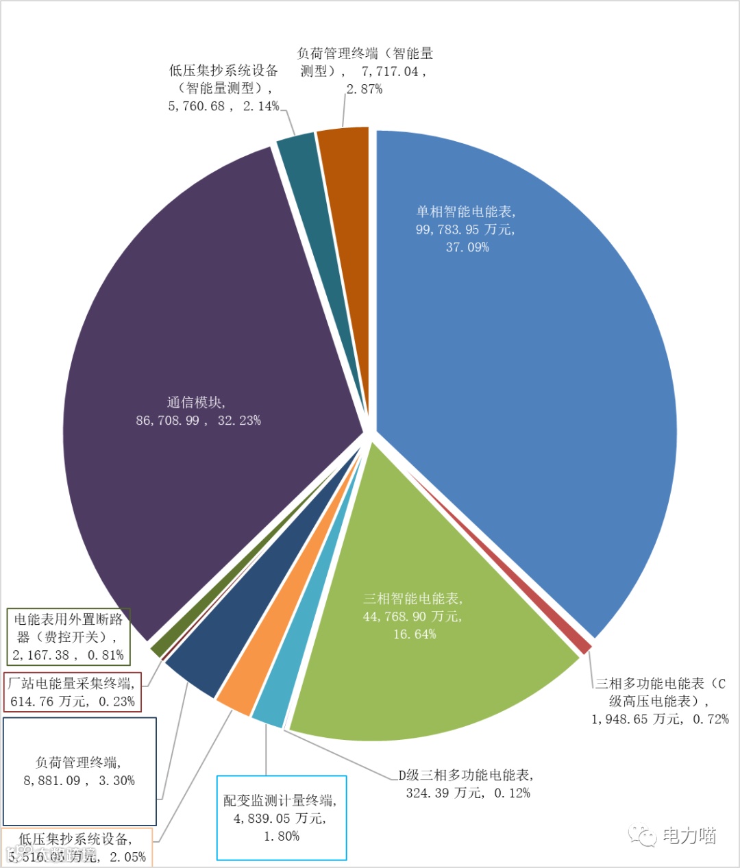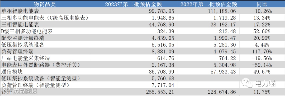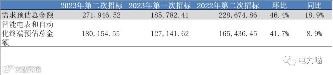 根据智能电表和计量自动化终端的分包情况,中标企业理论最大中标金额可达到23,204.01万元,占比约为12.9%。从理论中标金额来看,本次招标比2023年第一批的理论最大中标金额大幅增加约5162万元;从占比来看,本次招标比2023年第一批理论最大中标金额占比减少约1.3个百分点。