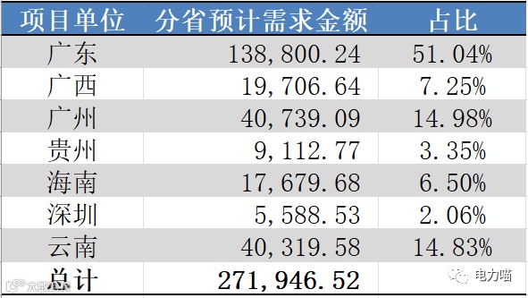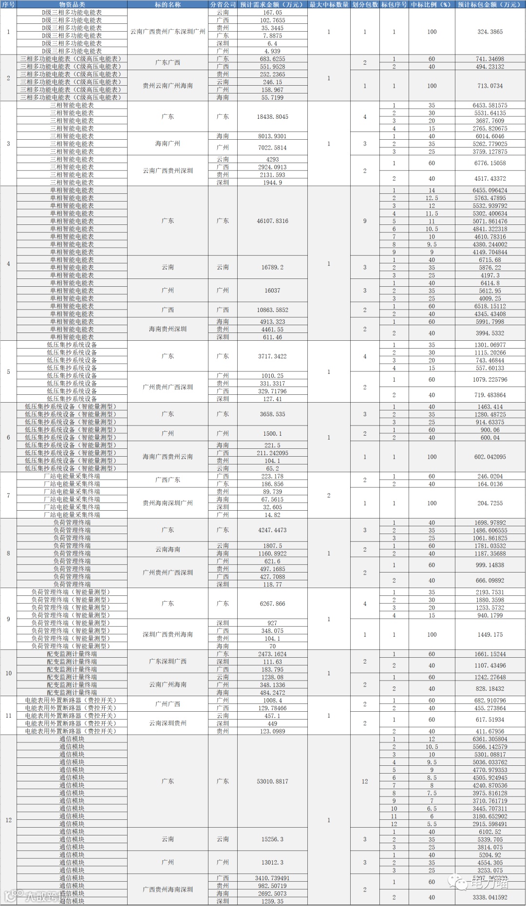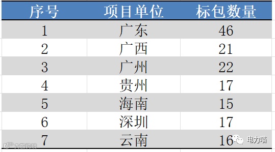 从项目单位维度,仅广西电网本次需求的物资品类达到全部12个,广东、广州和贵州达到11种,深圳达到10种,海南和云南有9种。