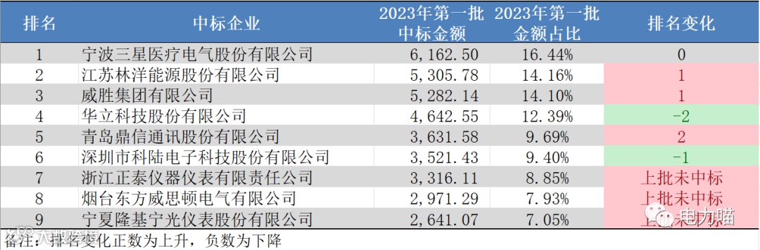 前5名合计市场份额环比大幅增加7.34个百分点,主要受各款产品分包数量减少影响,本次招标电能表类物资整体集中度明显提高; -