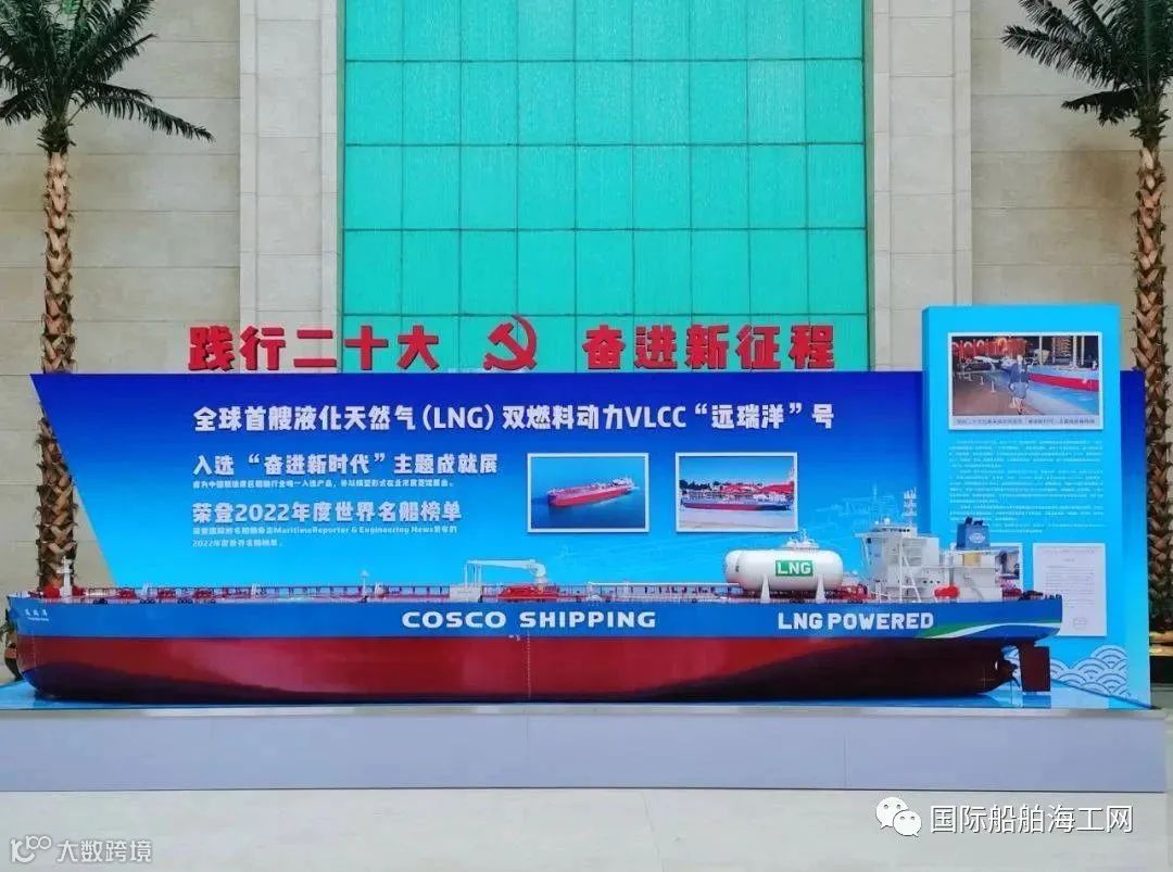 2022年9月27日至12月31日,“奋进新时代”主题成就展在北京展览馆隆重举行。展览期间,巨大的全球首艘液化天然气(LNG)双燃料动力VLCC“远瑞洋”号模型吸引了不少参观者驻足观看,听取讲解,询问有关情况,一睹这艘超级巨无霸风采。作为中国制造展区船舶行业唯一入选参展产品,该船经中宣部、工信部层层筛选,最终成功入选,以实物模型形式在现场展出。