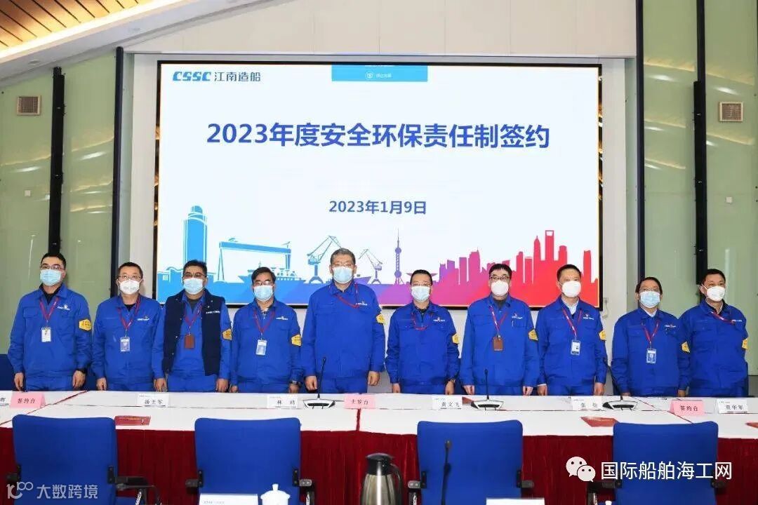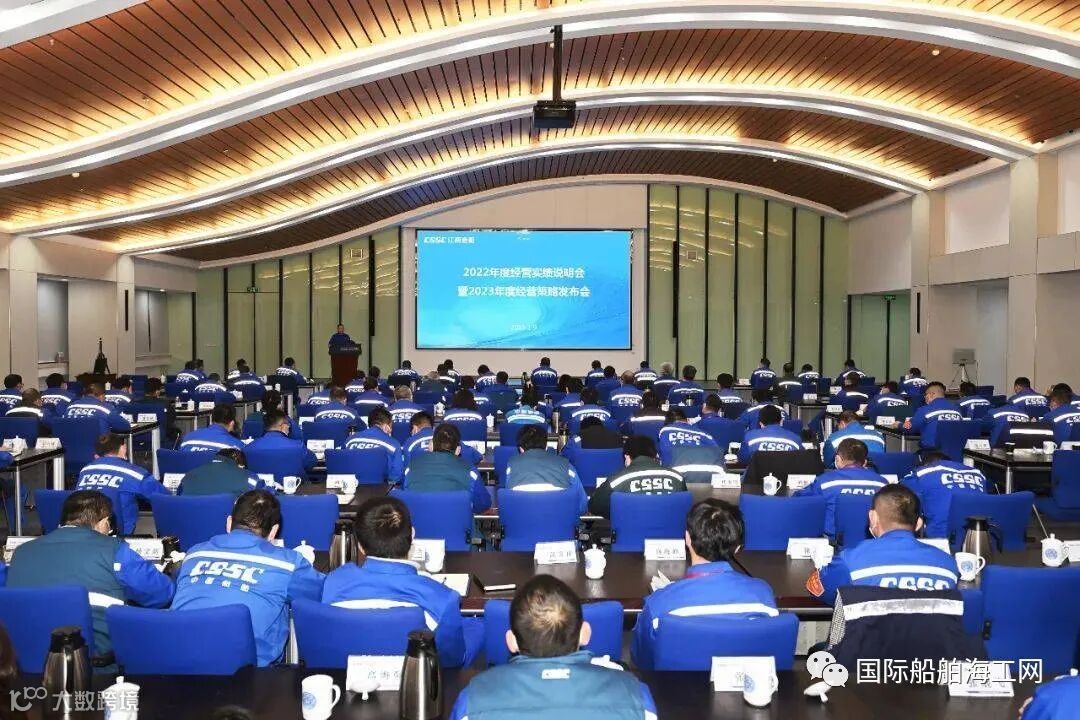 1月9日下午,中国船舶集团旗下江南造船召开年度经营策略发布会。 会议总结了公司2022年工作,分析了2023年面临的形势与任务,部署了2023年重点工作,公司党委书记、董事长林鸥,党委副书记、总经理黄文飞等公司领导; 各部门科级正职以上管理人员; 各部门高级专务、副总监、主任工程师、首席技师、各型号三总师; 江南重工、江南管业、江南房产、江南技校、江南原址/传媒公司行政及党组织负责人(含主持)参加会议。