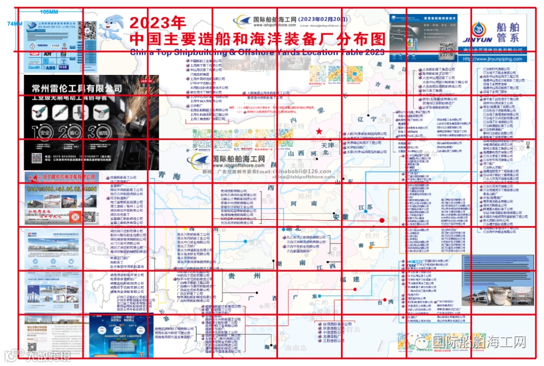 国内外关注的2023年新版中国造船厂主要汇集的船厂地图特制版大图将于2023年2月22-23日在江苏靖江市举办的船舶会2023年LNG动力船和LNG技术装备上海(靖江)峰会上发布,届时,参加会议的代表们将现场一睹2023年版船厂地图特制版大图的新面目,同时参会代表还将获赠本月刚刚发布的免费赠送新版2023年中国造船和海洋装备活跃厂家分布图。