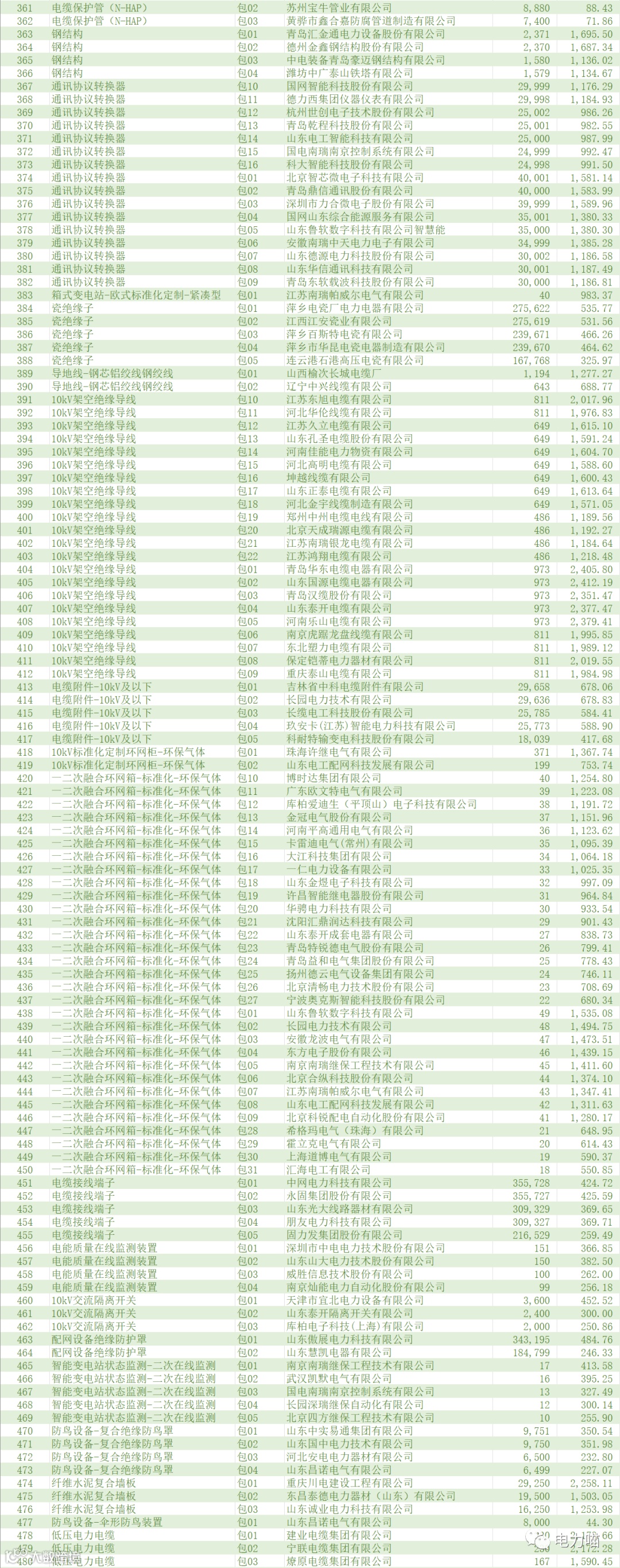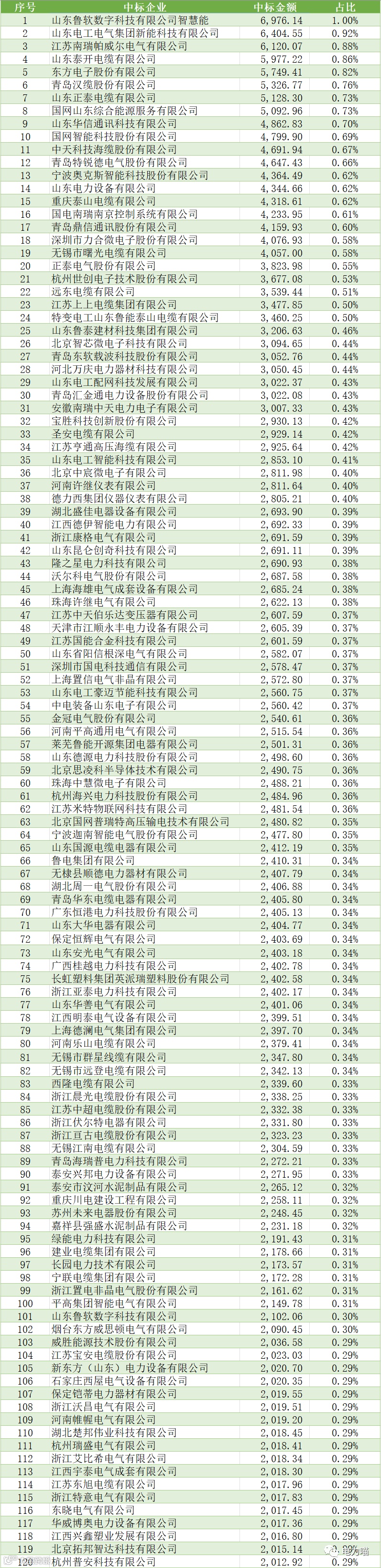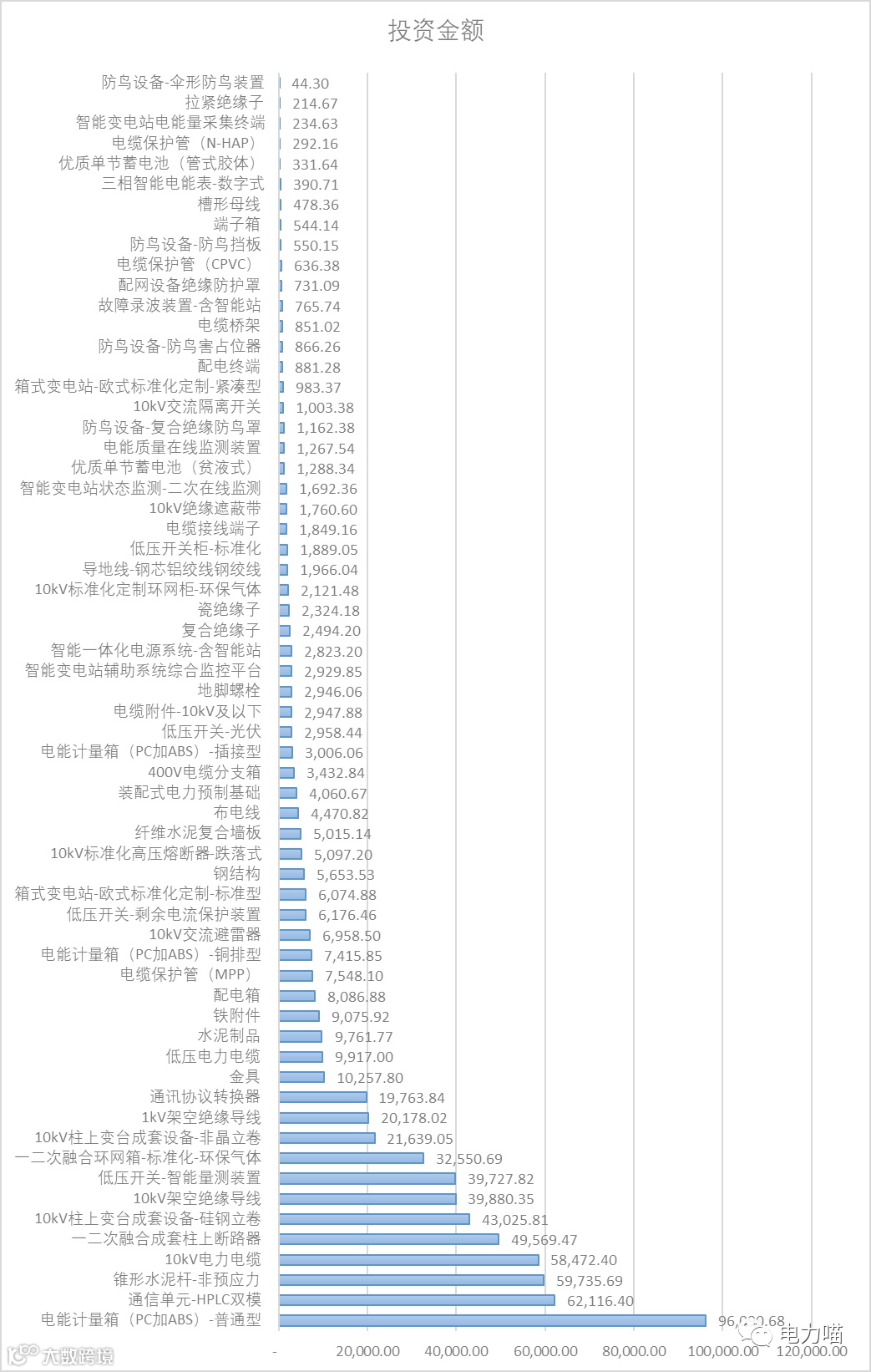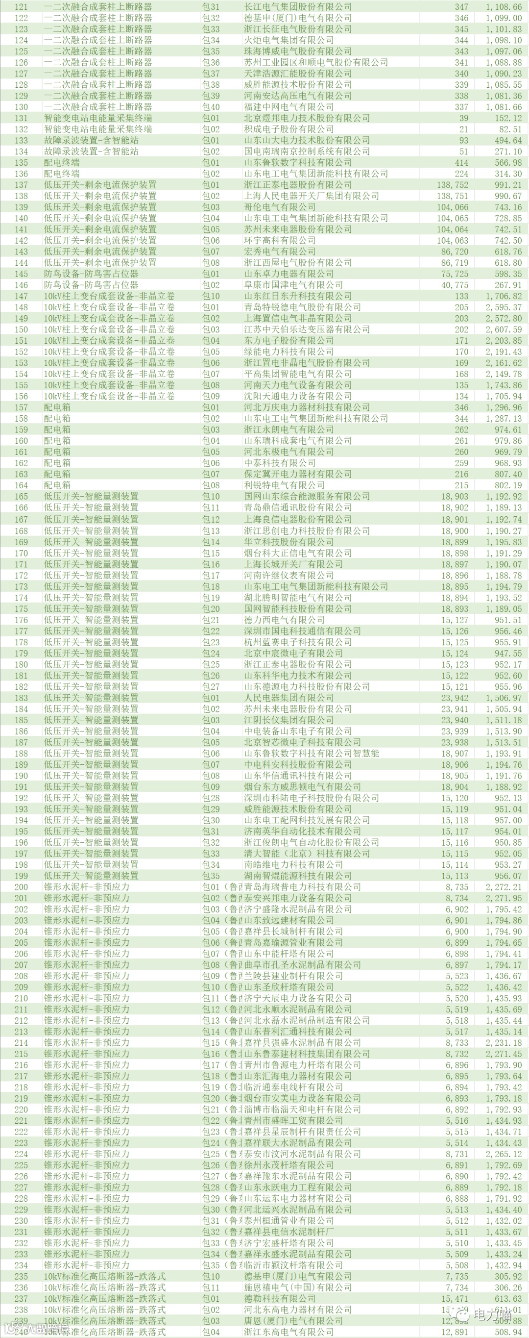 根据最终中标结果,共有电能计量箱(PC加ABS)-普通型、通信单元-HPLC双模、锥形水泥杆-非预应力、10kV电力电缆、一二次融合成套柱上断路器、10kV柱上变台成套设备-硅钢立卷、10kV架空绝缘导线、低压开关-智能量测装置、一二次融合环网箱-标准化-环保气体、10kV柱上变台成套设备-非晶立卷、1kV架空绝缘导线、通讯协议转换器、金具等13个标段在本项目投资金额超过1亿元。
