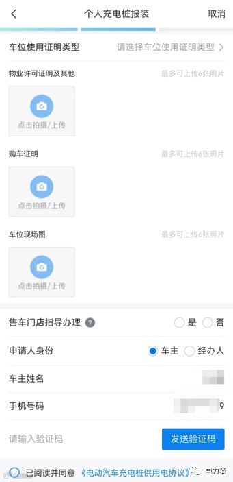 提交购车协议或购车发票或行驶证,申请报装人一般为车主本人。