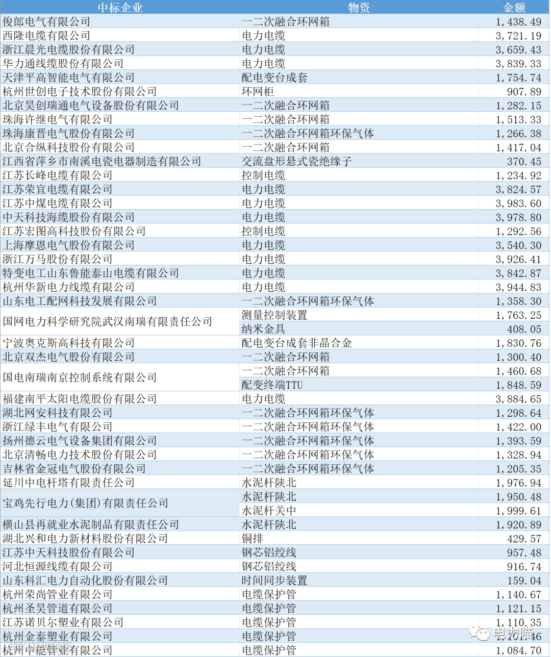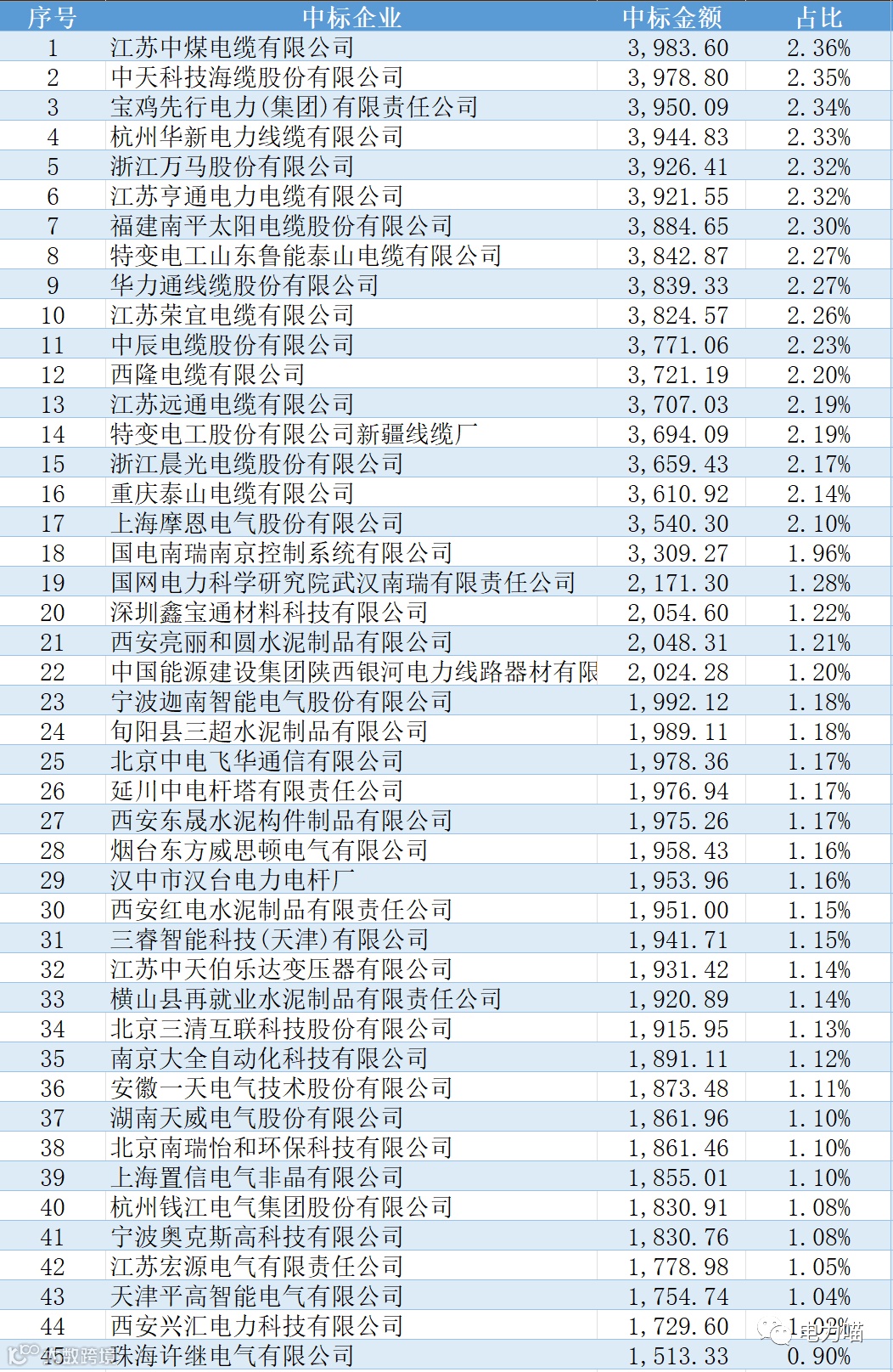 根据最终中标情况,本次项目共有97家企业中标,合计中标金额约168,983万元。