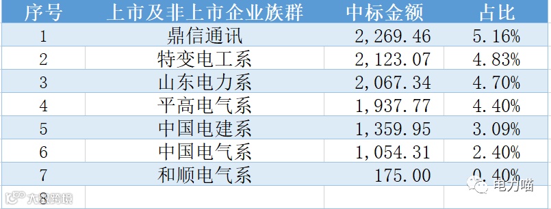 综合来看,鼎信通讯系合计中标金额最高,约2,269万元,约占本次招标总金额的52.2%。