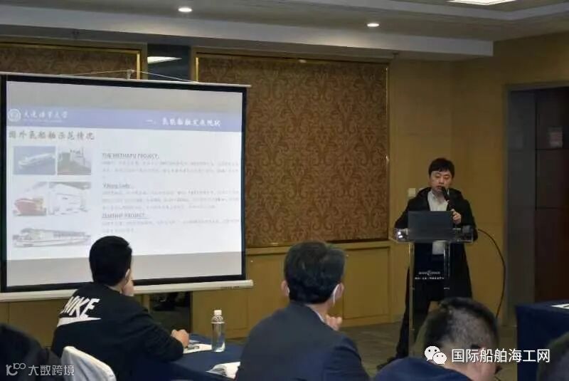 大连船用柴油机公司的技术中心副主任常磊以“绿色燃料船用主机发展现状介绍与前景展望”为题演讲交流。