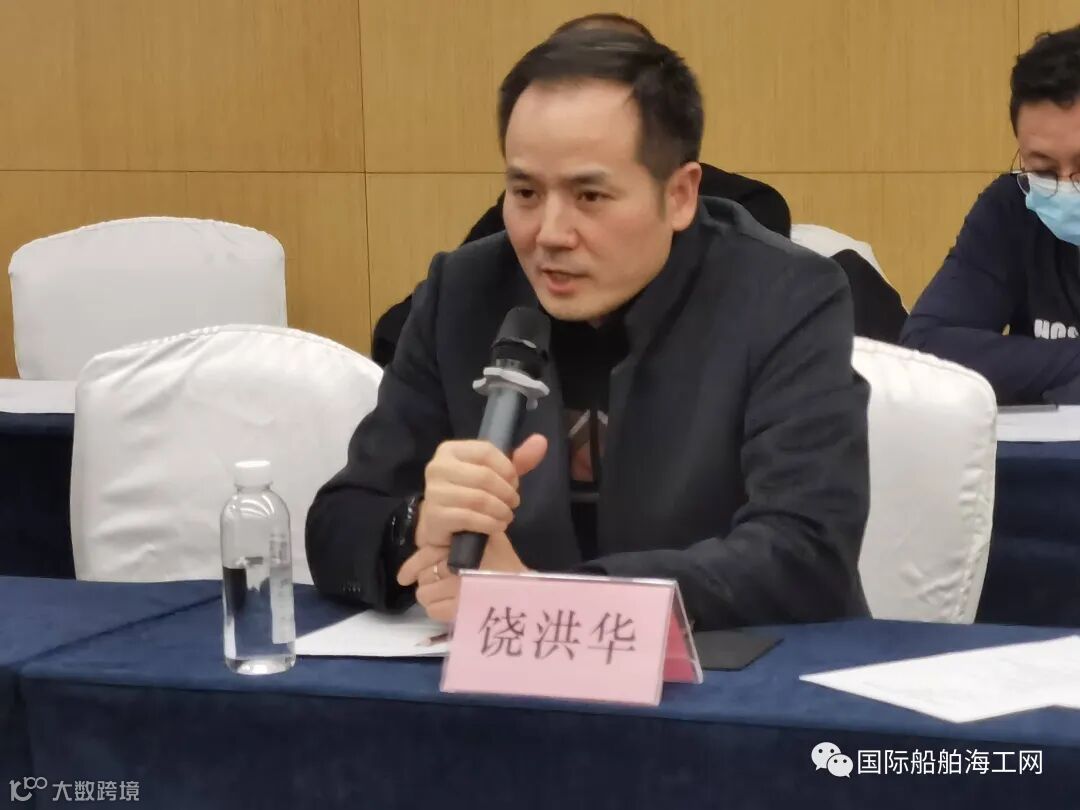 在沙龙讨论交流环节,大连中远海运重工有限公司副总经理饶洪华对氨燃料发动机在船舶应用发展发言交流。