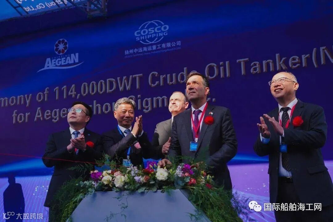 11.4万载重吨阿芙拉油船“GREEN ANAX”轮是扬州中远海运重工为Aegean Shipping公司建造的4艘11.4万载重吨阿芙拉油船中的最后一艘,总长249.9米,型宽44米,型深21.5米,结构吃水15米,该轮装配有消涡鳍节能装置,主辅机配备脱硝装置,满足最新排放及环保要求。作为新一代获得BV防污染符号“CLEANSHIP SUPER”的油轮,该轮包含了许多创新和环保措施,旨在减少空气和海洋污染。该轮在航速、油耗、载重量等综合性能方面达到世界一流水平,是一型设计先进、低碳环保、经济节能、安全可靠,具有领先竞争优势的船舶产品。