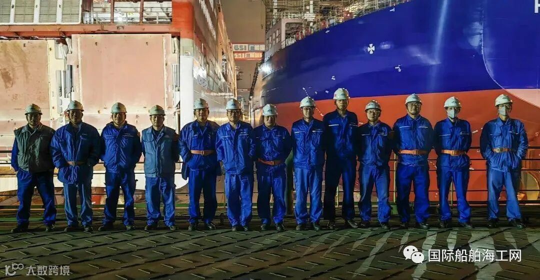 12月1日凌晨5:30时,2号船坞开始放水,出坞工作小组在2号坞门合影。
