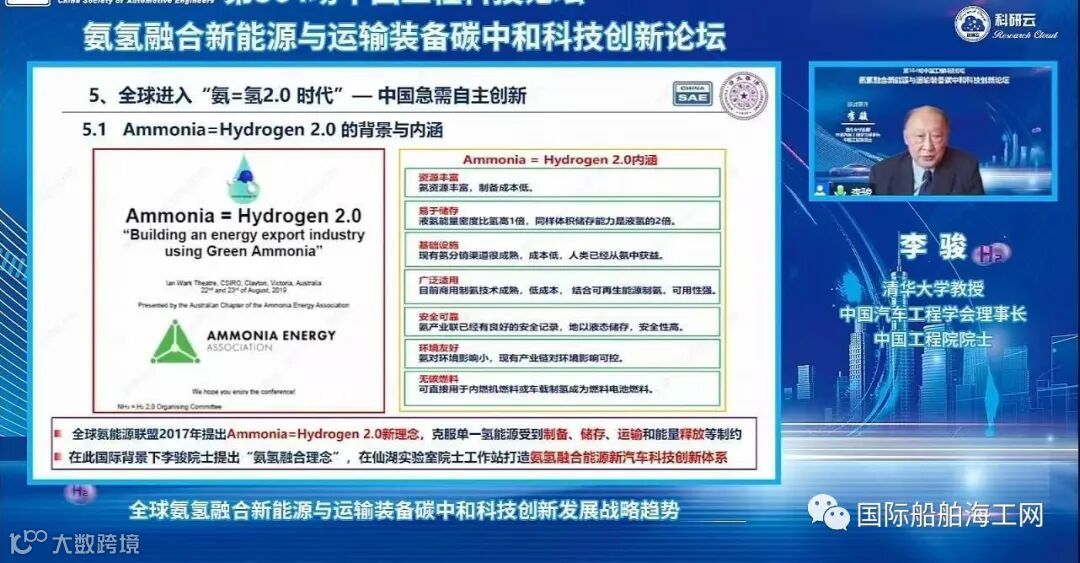 氨氢融合是以氨为能源载体,与氢经济相融合的新型能源经济体系和零碳社会经济体系。推动氨氢融合新能源体系发展是实现国家双碳达标目标和交通运输行业低碳转型的必然选择,也是拉动西北等偏远地区可再生能源发展的重要技术补充。近年来,氨氢融合一体化技术路线取得快速发展,国家多项政策明确支持绿氨制取及储能技术发展、氨氢内燃机重大科技攻关、氨燃料运输装备开发及产业化。本次论坛不仅从宏观层面阐述了氨氢融合发展的战略意义,也从微观层面展示了产业链各环节的技术创新现状和趋势,论坛的成功召开对推动氨氢融合一体化运输装备的应用、助力我国能源交通领域碳中和愿景目标的实现具有重要意义。