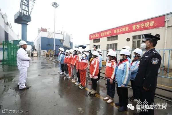 随后,学生们来到金陵船厂码头,现场参观即将交付的新造船舶,面对着眼前的庞然大物,孩子们不禁连连惊叹。