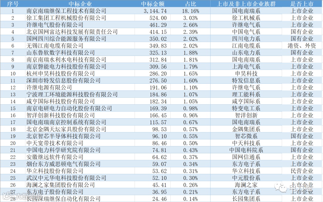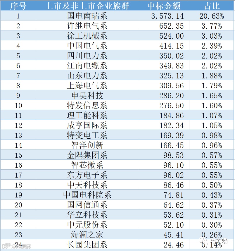 综合来看,上海电气系合计中标金额最高,约3,573万元,约占本次招标总金额的20.6%。