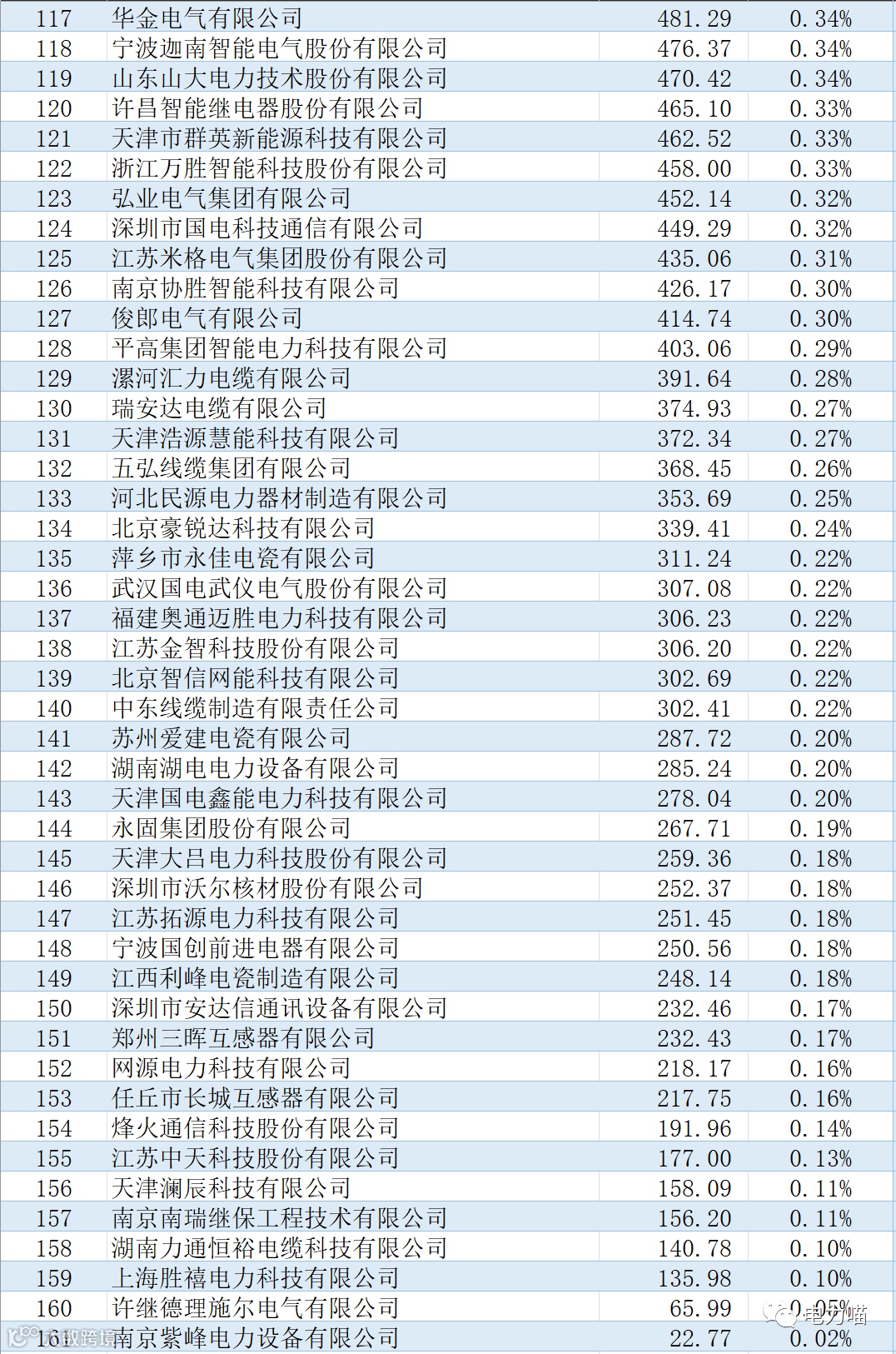根据最终中标情况,本次项目共有161家企业中标,合计中标金额约140,373万元。
