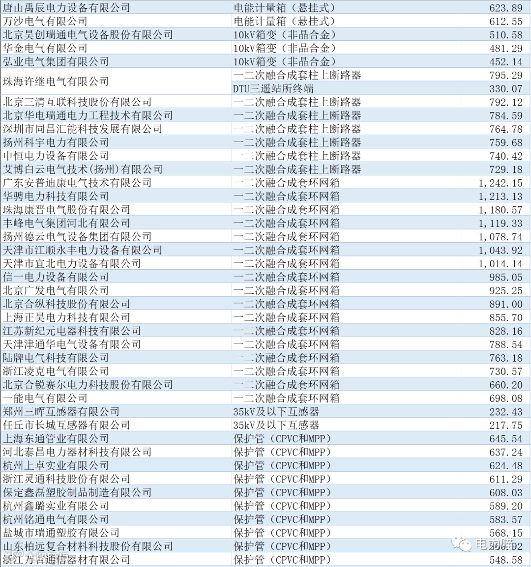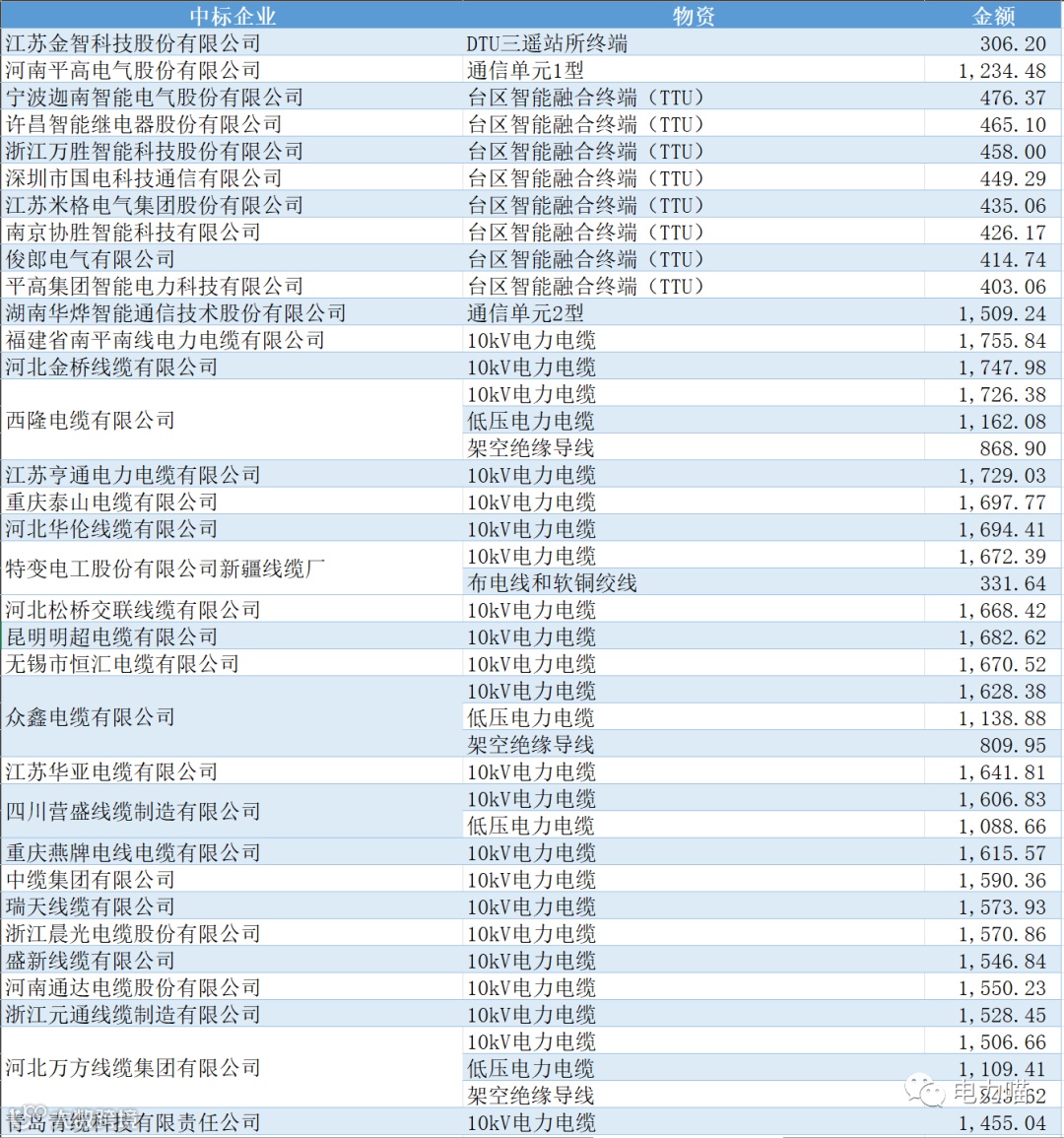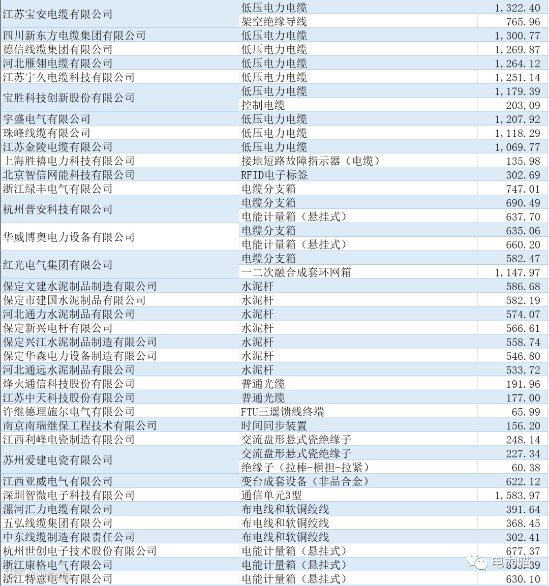 单一企业中标金额最多的是西隆电缆有限公司,中标金额约为3,757万元,占比约2.7%。共有54家企业中标金额超过1,000万元的企业,合计金额占比约61%。