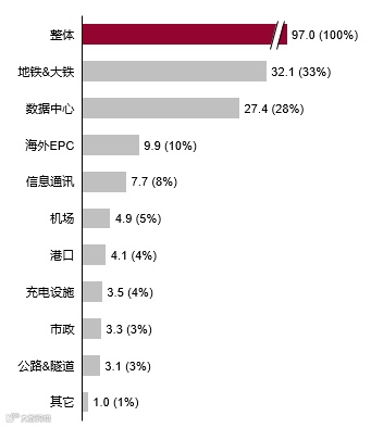 基础设施行业投资有所放缓,水处理,港口,机场行业业绩下滑;云计算、大数据、物联网和人工智能等新兴技术应用推动数据中心快速增长;轨交方面高铁在实现四纵四横的基础上向八纵八横发展,各地政府为了当地的经济效益,开始兴建地铁,带动行业快速增长。