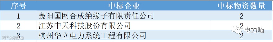 中标物资品类数量方面,共有3家企业中标2种或以上数的物资品类。