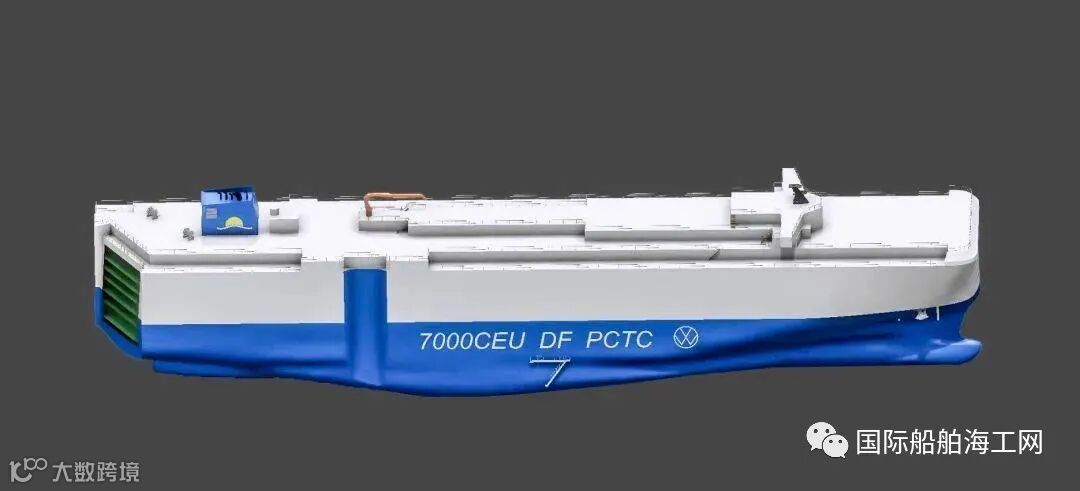 比亚迪7000车双燃料PCTC是广船国际在建7000车PCTC系列船的“绿色低碳升级版2.0”,该船总长200米,型宽38米,设计吃水9米,设计航速18.5节,采用天然气(LNG)/燃油双燃料推进系统,满足智能船舶要求,首次配备电池系统、轴带发电机,同时采用节能装置、减阻防污漆等各类节能措施,是一艘绿色智能、环保高效的汽车运输船。