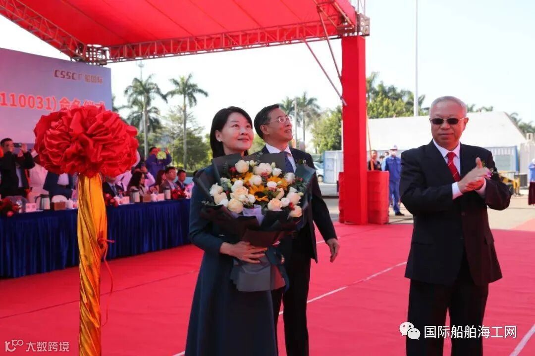 命名嘉宾王伶女士将该船命名为“HAFNIA LANGUEDOC”(哈夫尼亚 朗格多克)号,并为醒狮点睛、剪彩。中国船舶租赁董事长钟坚、广船国际总经理陈激陪同。