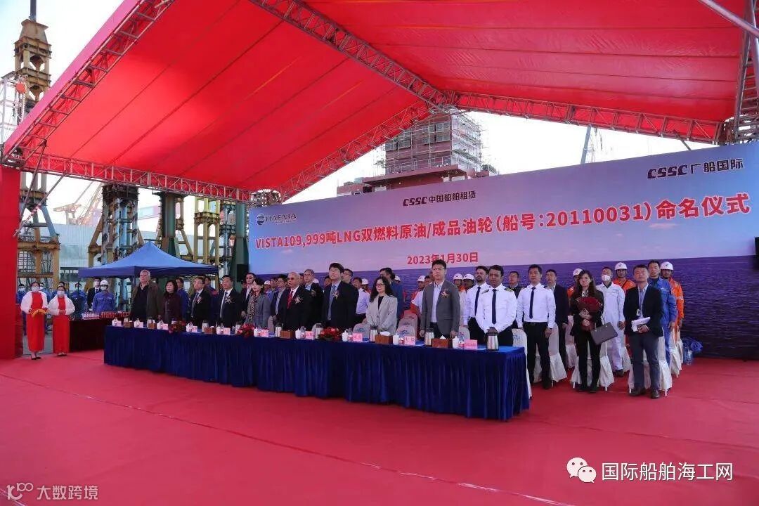 “躺平不可取、躺赢不可能,奋斗正当时”,1月30日,在兔年新春假期后的首个星期一,中国船舶集团旗下广船国际为中船租赁和Hafnia公司建造的11万吨LNG(天然气)双燃料原油/成品油船1号船举行命名仪式。