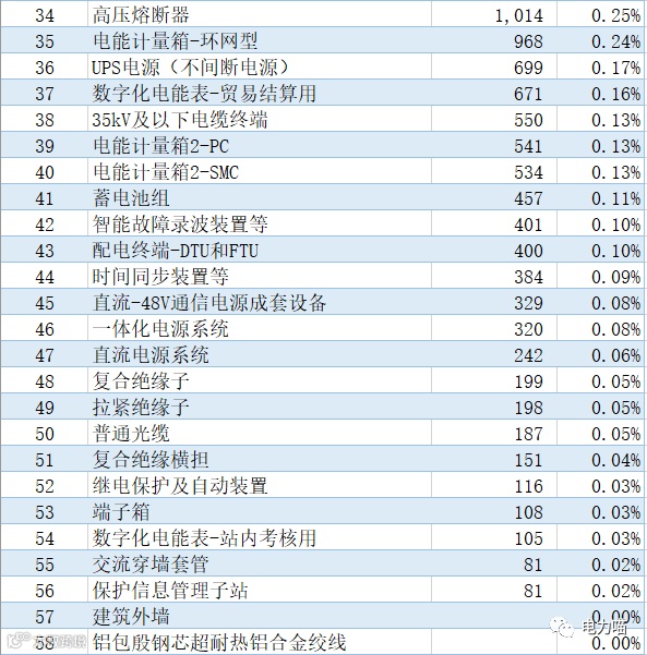 另外,低压开关柜物资有1个包流标,建筑外墙有2个包流标、铝包殷钢芯超耐热铝合金绞线有1个包流标、通信单元2有4个包流标。