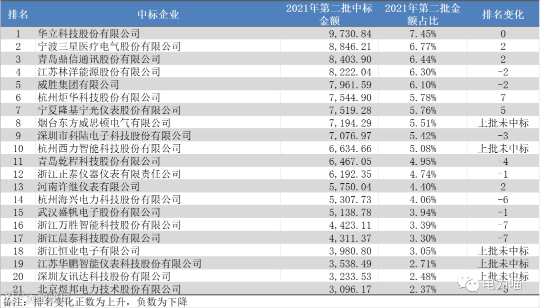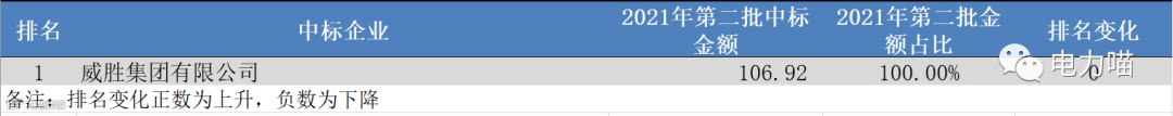 本次三相多功能电能表(B级、C级高压电能表)最终是威胜集团有限公司排名第一。另外,有1家上批未中标企业新中标,有1家企业的中标名次出现下降,有1家企业的中标名次保持不变。